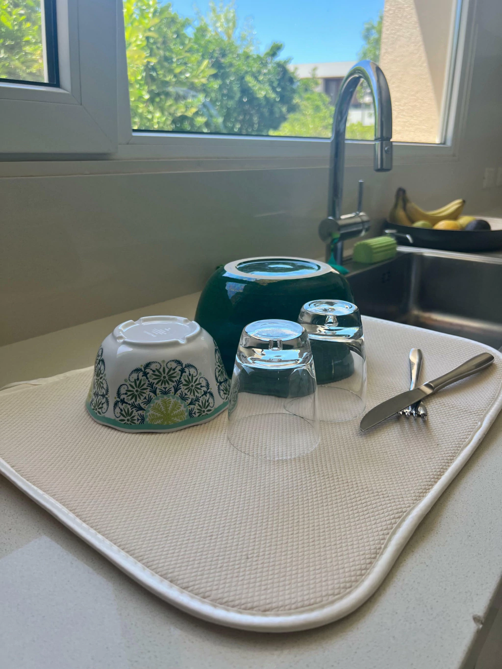 Escurrí mas rápido tu vajilla evitando la formación de salpicaduras y derrames en tu mesada, con nuestro escurridor de microfibra para vajilla.