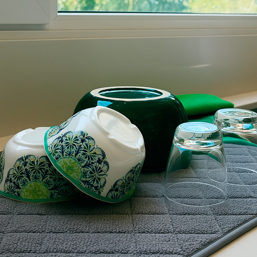 Escurrí mas rápido tu vajilla evitando la formación de salpicaduras y derrames en tu mesada, con nuestro escurridor de microfibra para vajilla.