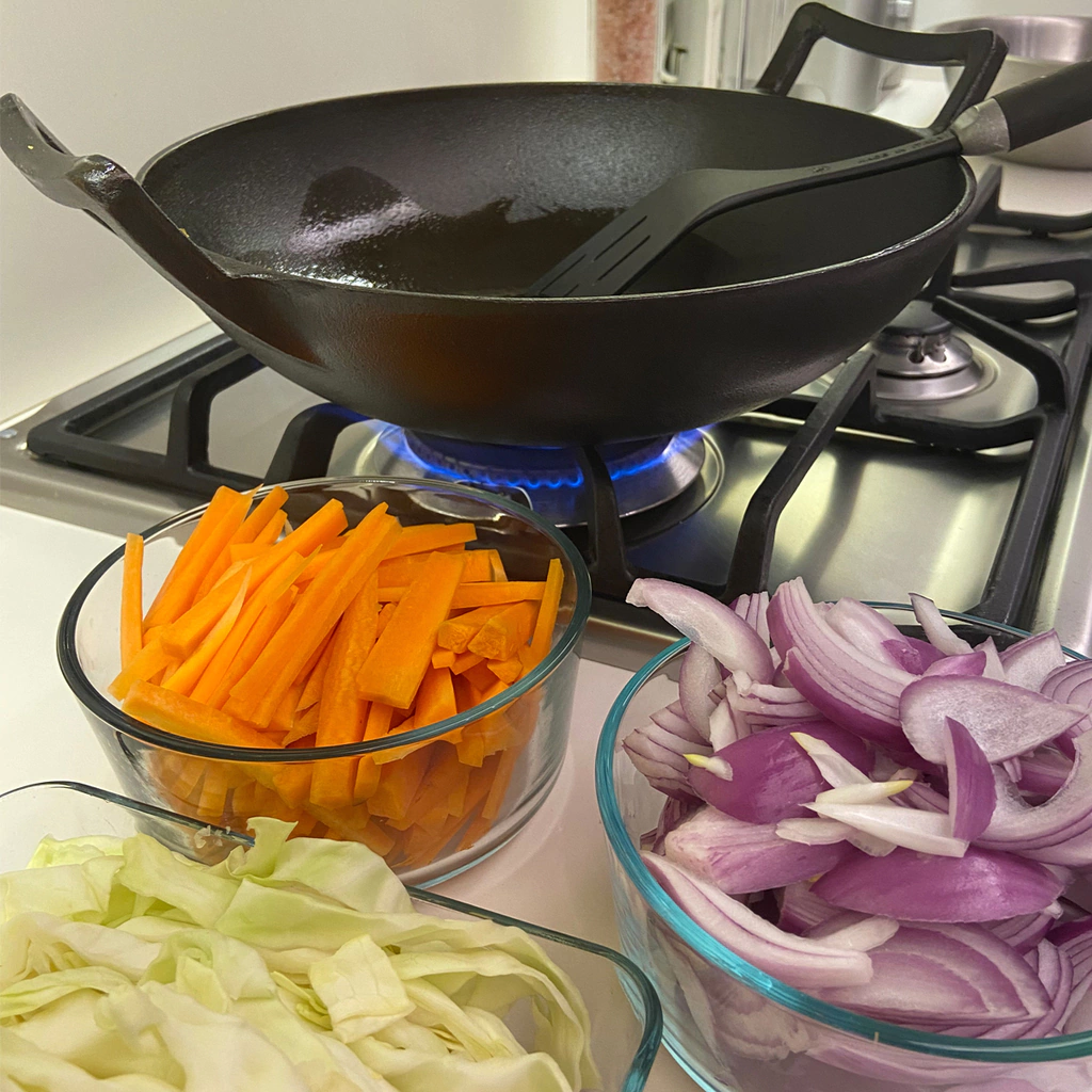 Para cocinar rápido y saludable el infaltable en tu cocina es este wok de hierro fundido, clave para lograr unos salteados que llevarán oriente a tu mesa con vegetales al dente, carnes, mariscos, o lo que quieras.